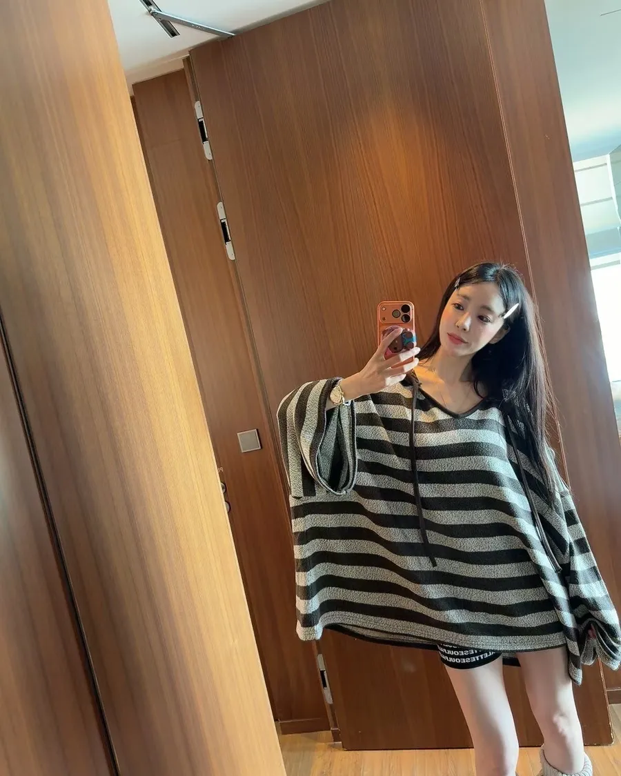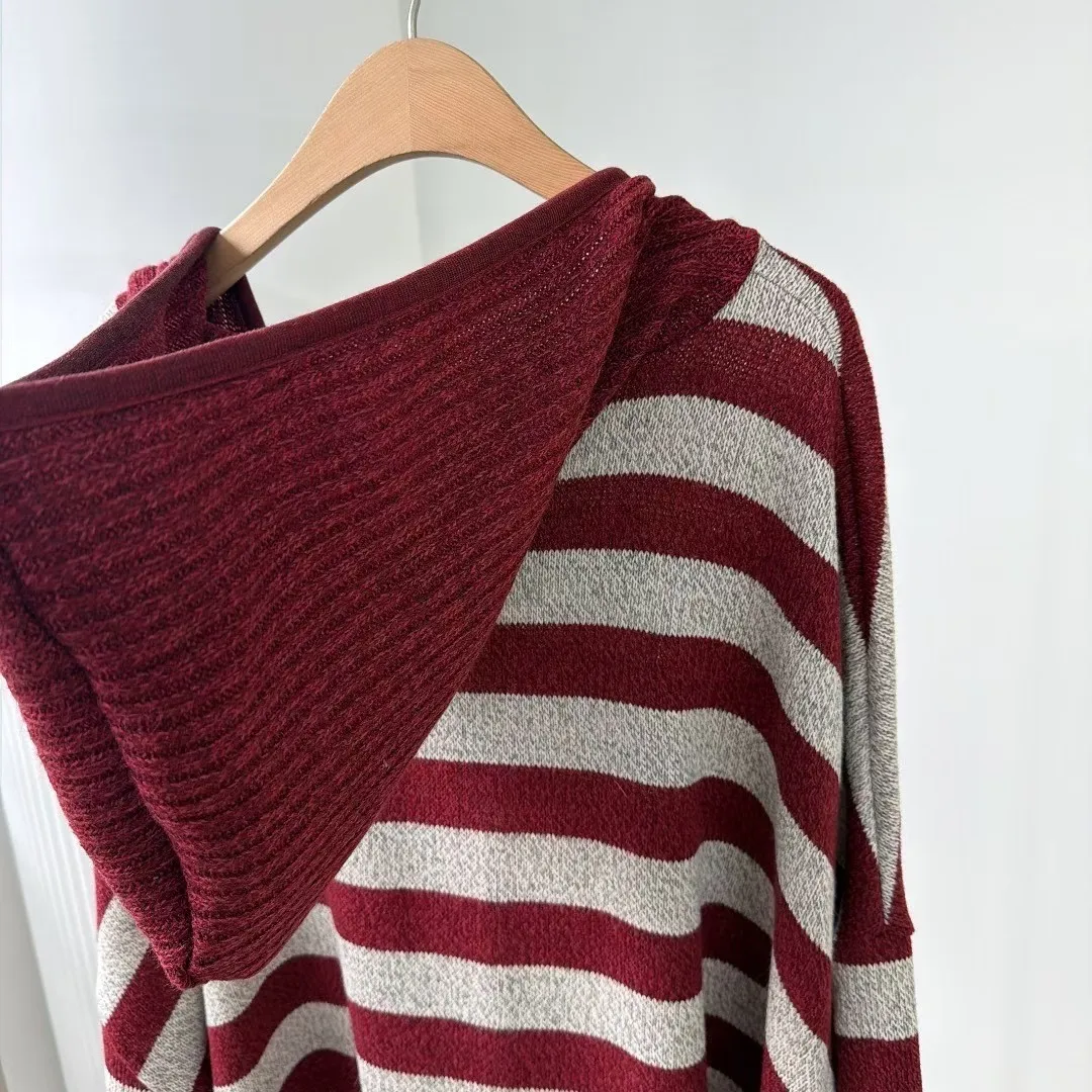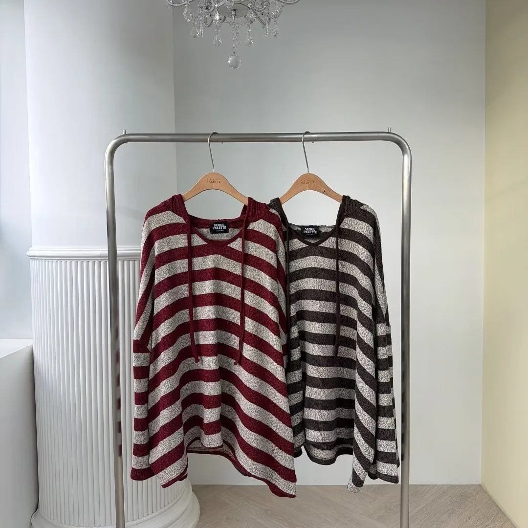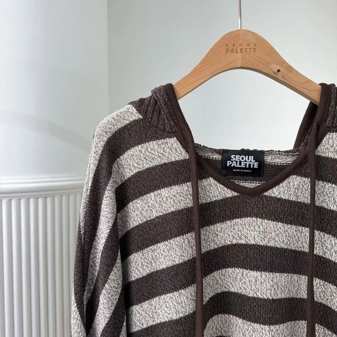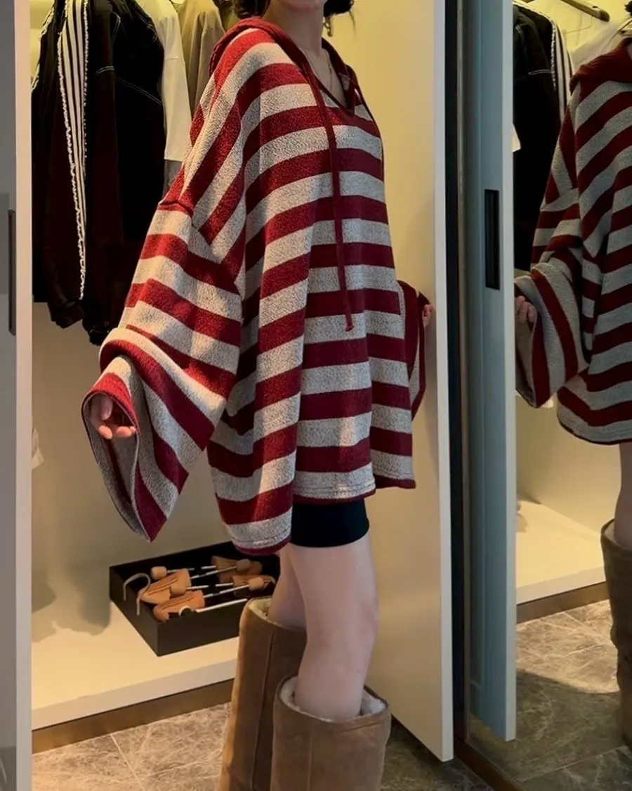 正韓連帽條紋長板衣