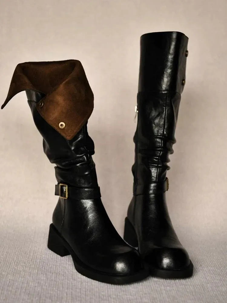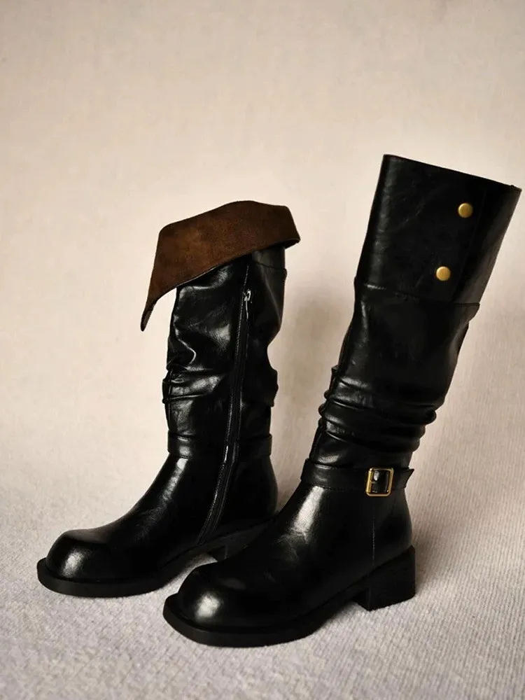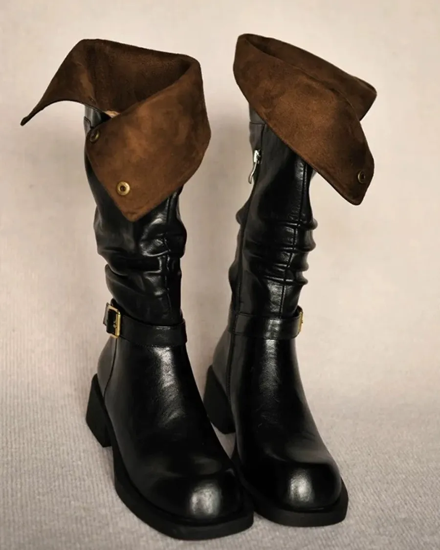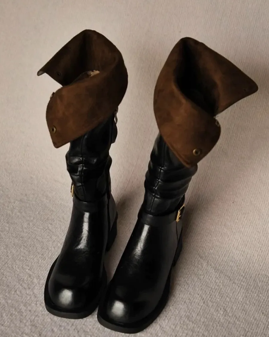 牛皮金屬扣兩穿騎士靴