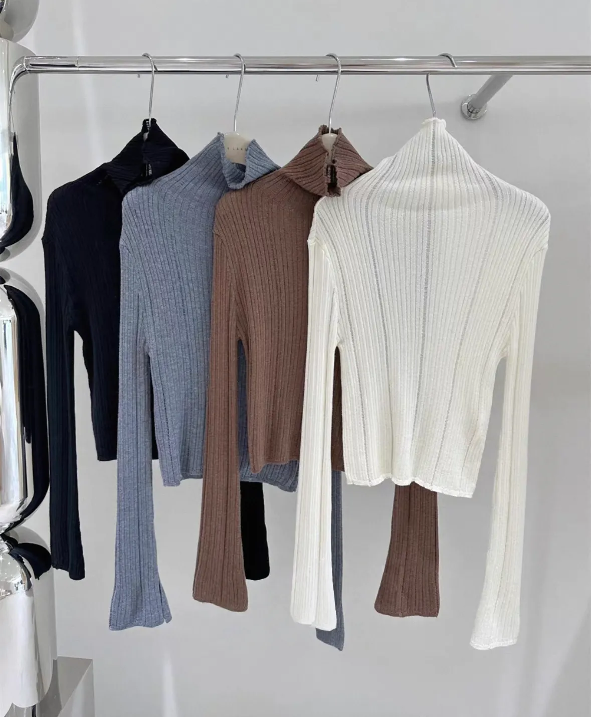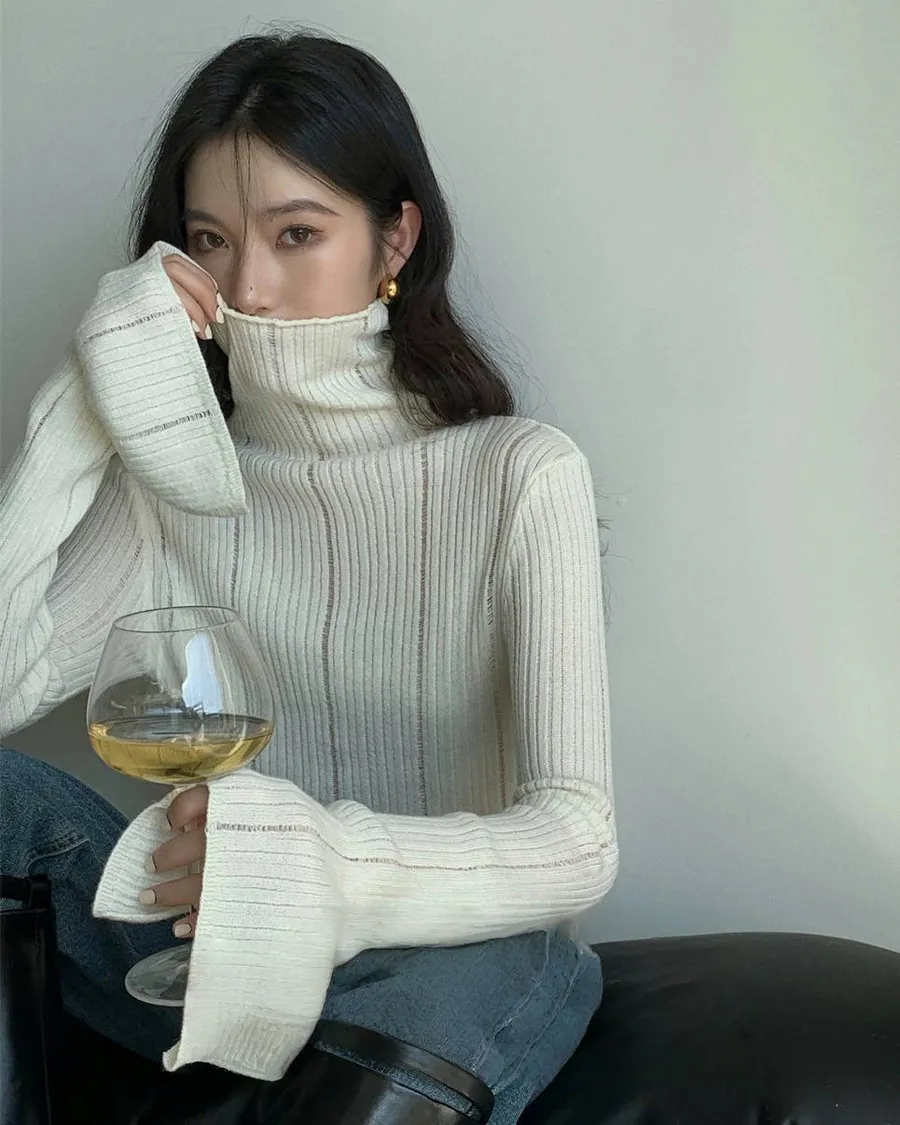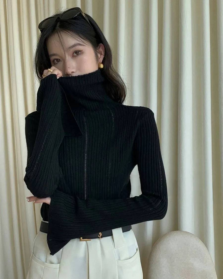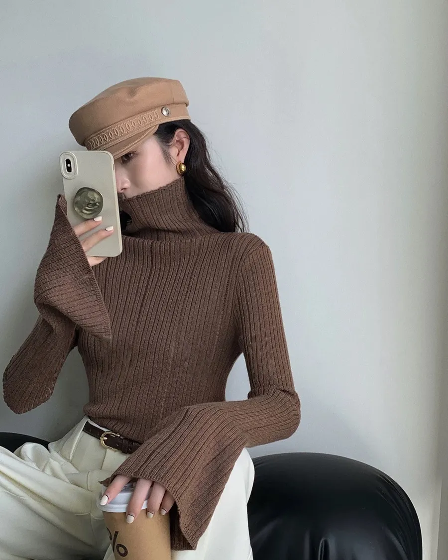韓板喇叭袖口修身針織高領