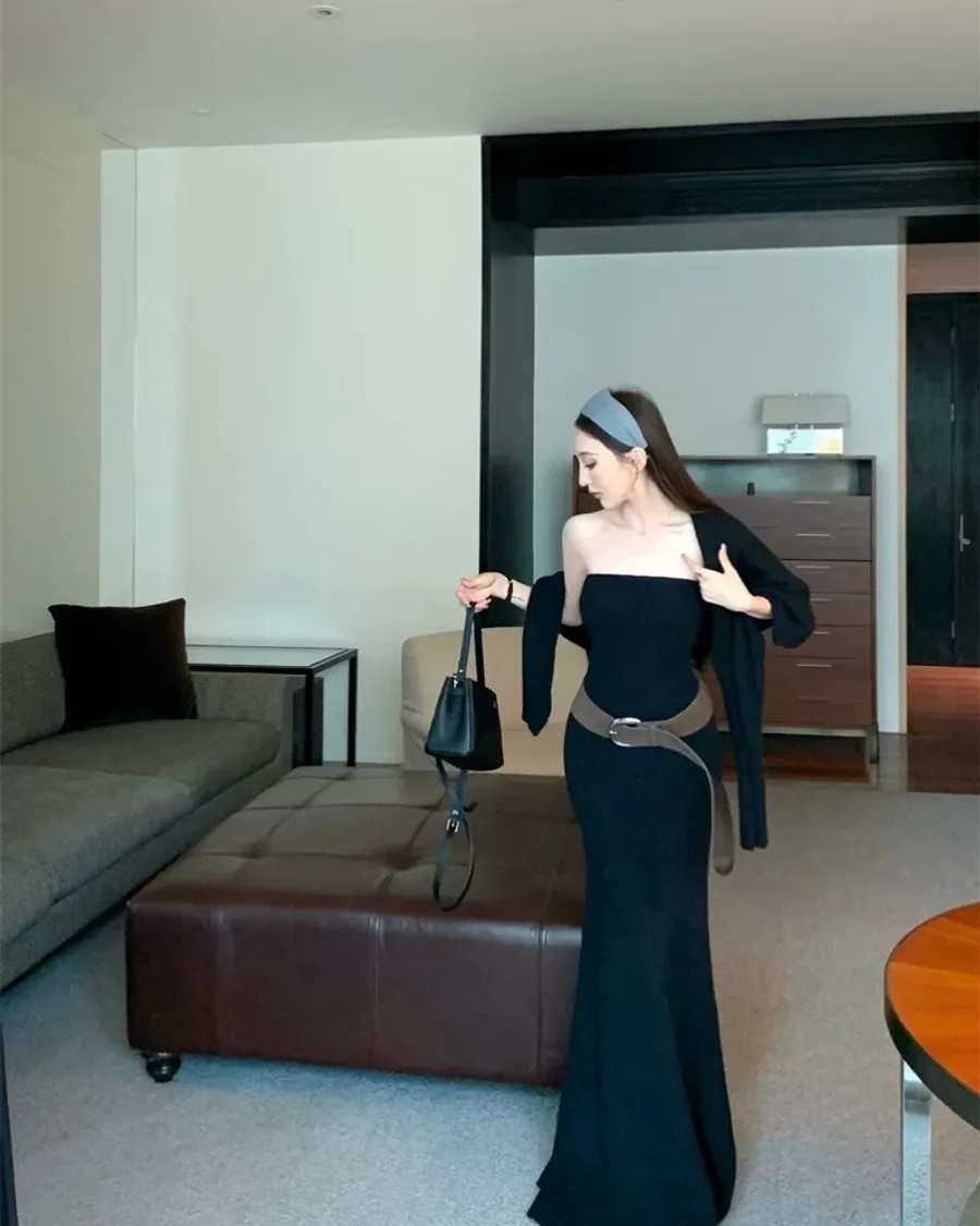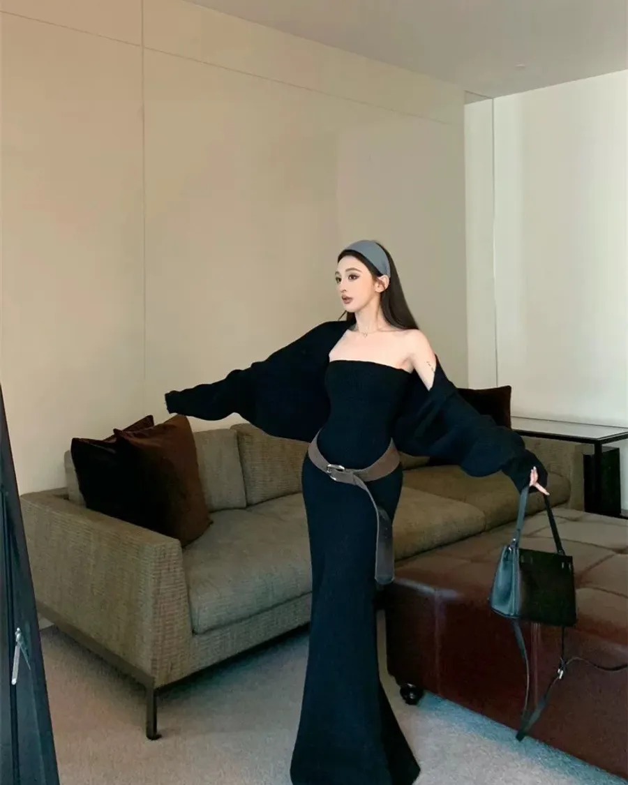 針織平口連身裙+外套+腰帶