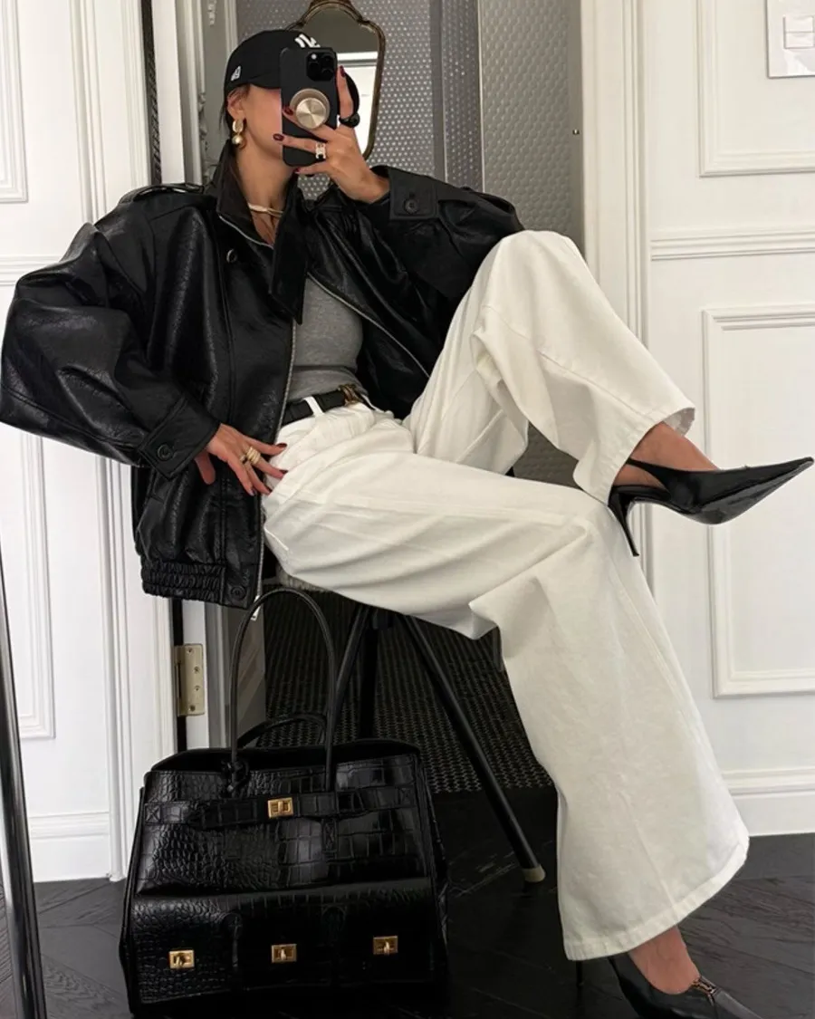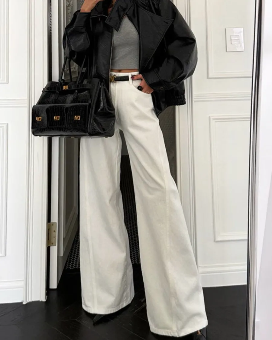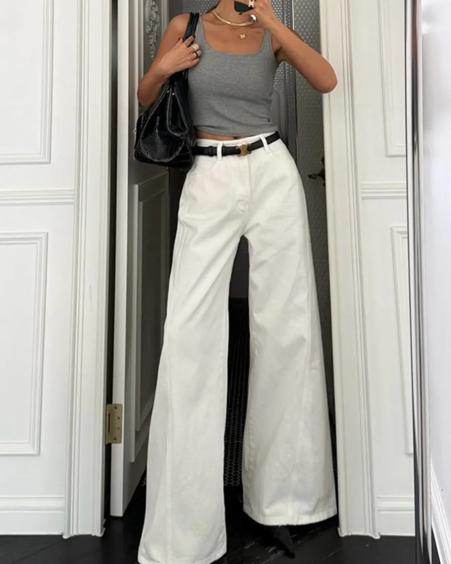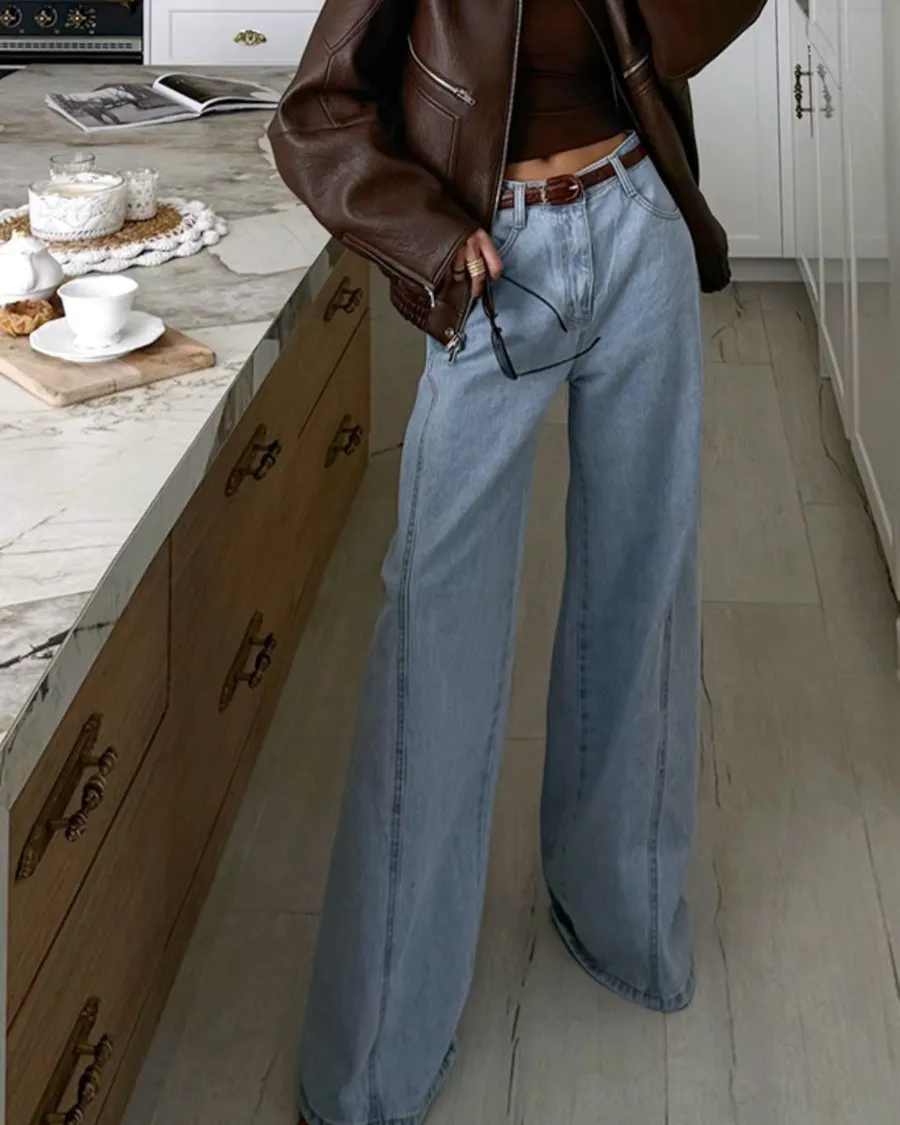 正韓高腰顯瘦牛仔寬褲