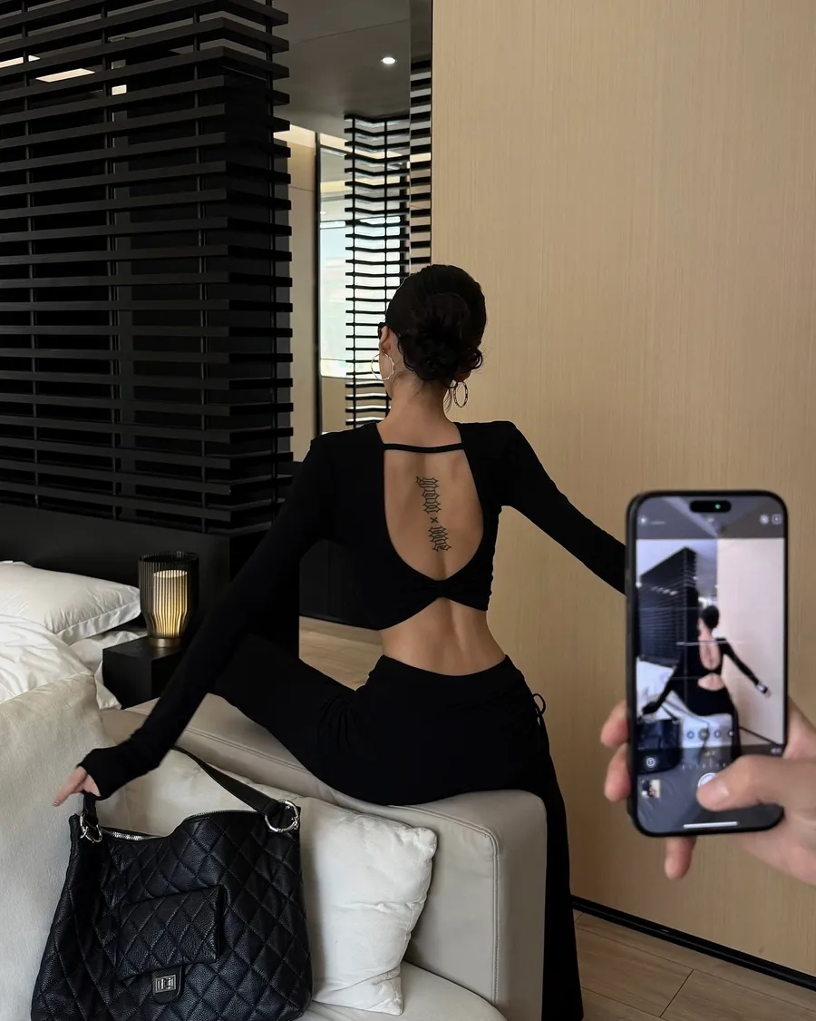 性感露背修身顯瘦兩件套裝