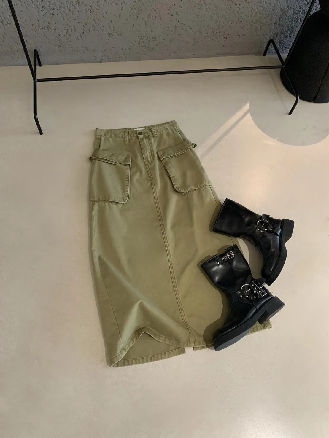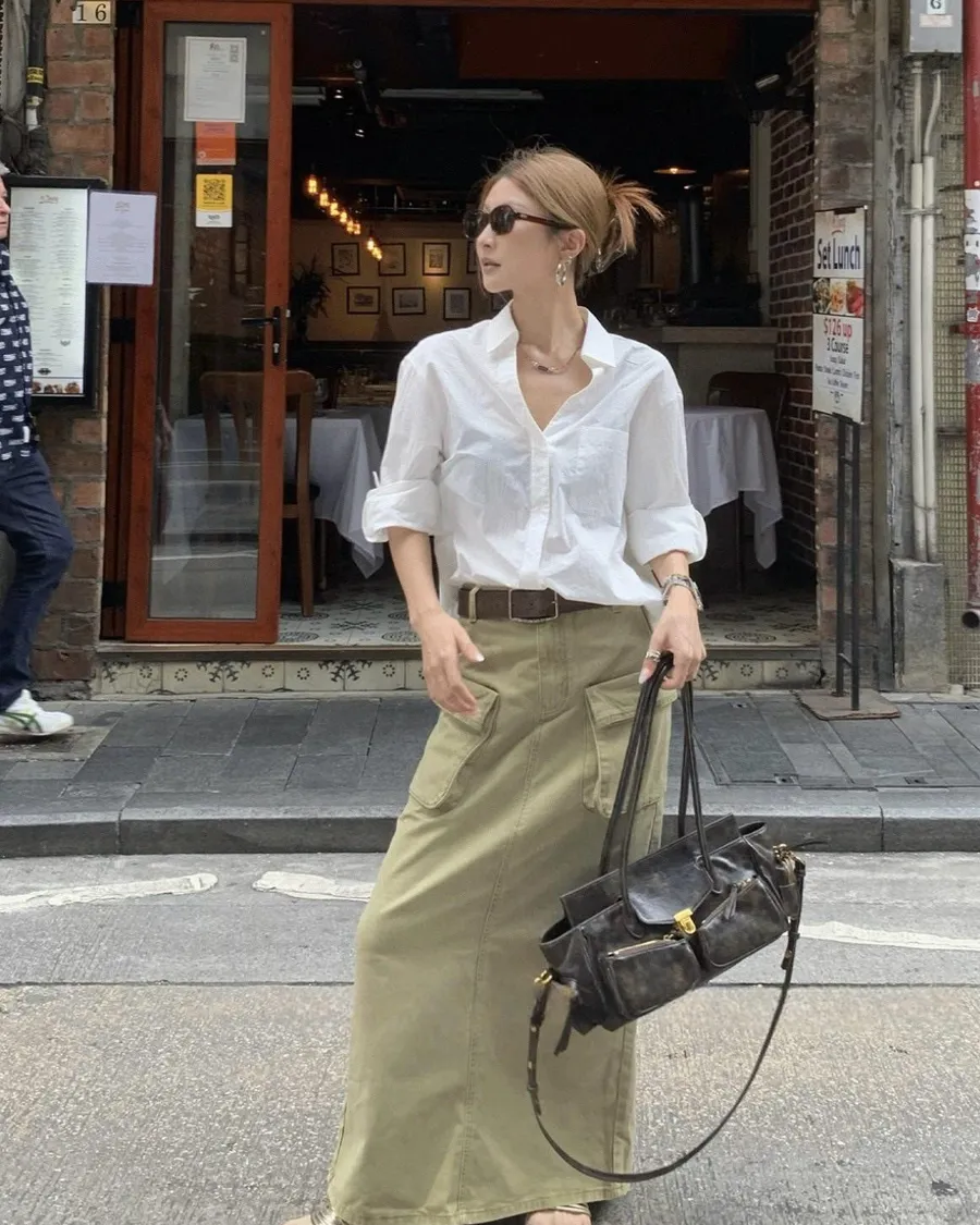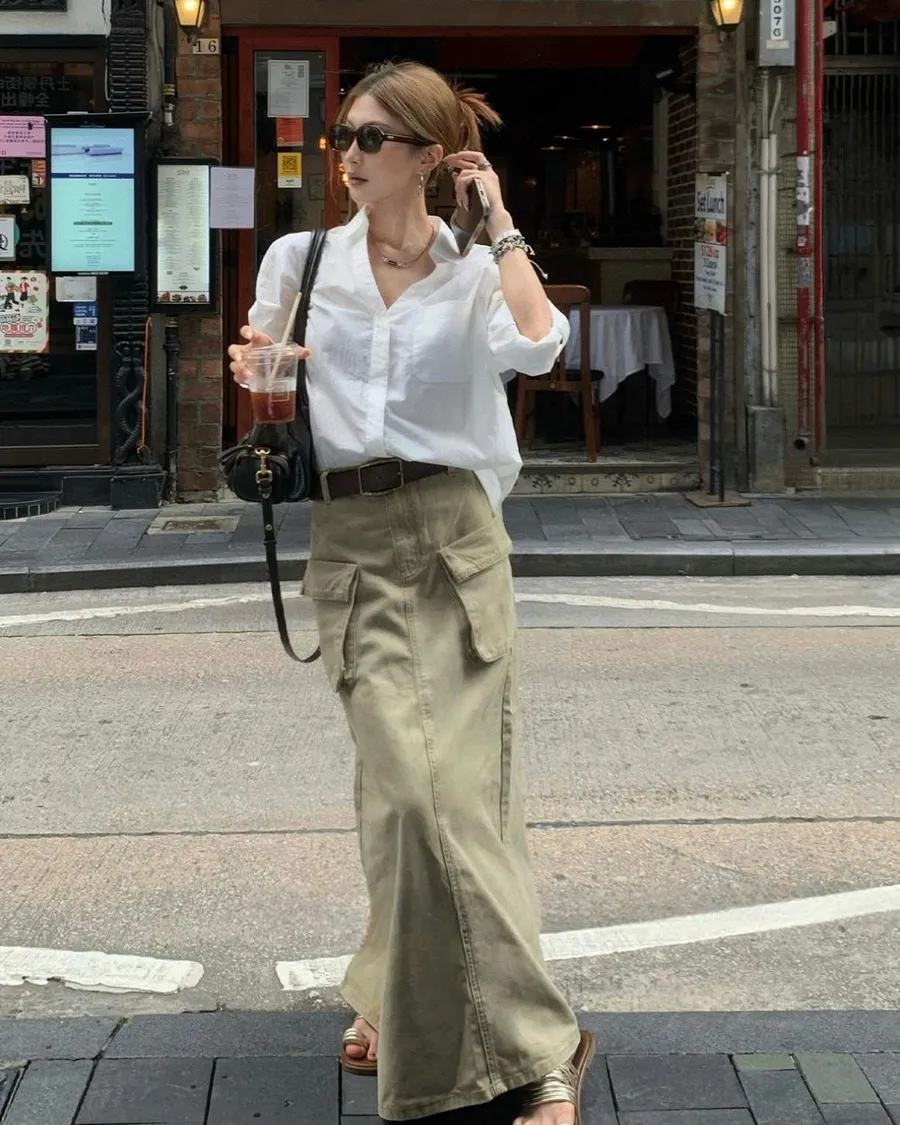 高腰工裝雙口袋A字長裙